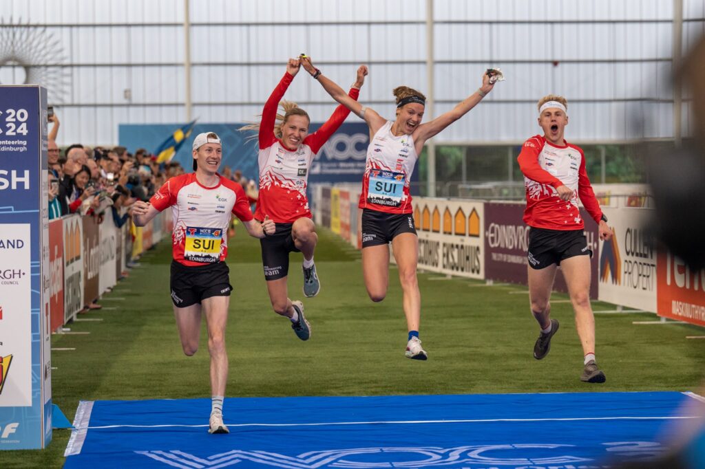It was a close finish at the Sprint Relay race At Riccarton on Sunday afternoon with Switzerland coming out on top after a close battle with Sweden, who had mis-punched. Finland took the silver and Norway won the bronze medals.