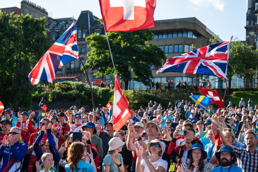The sun was out in Princes Street Gardens for the many spectators who had turned out to support the athletes as they navigated their way across the old town of Edinburgh.